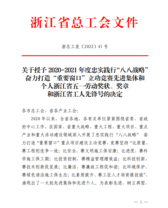 4月27日,我司新建浙江麗水機(jī)場(第一批)02 標(biāo)段項目部榮獲“浙江省工人先鋒號”稱號。