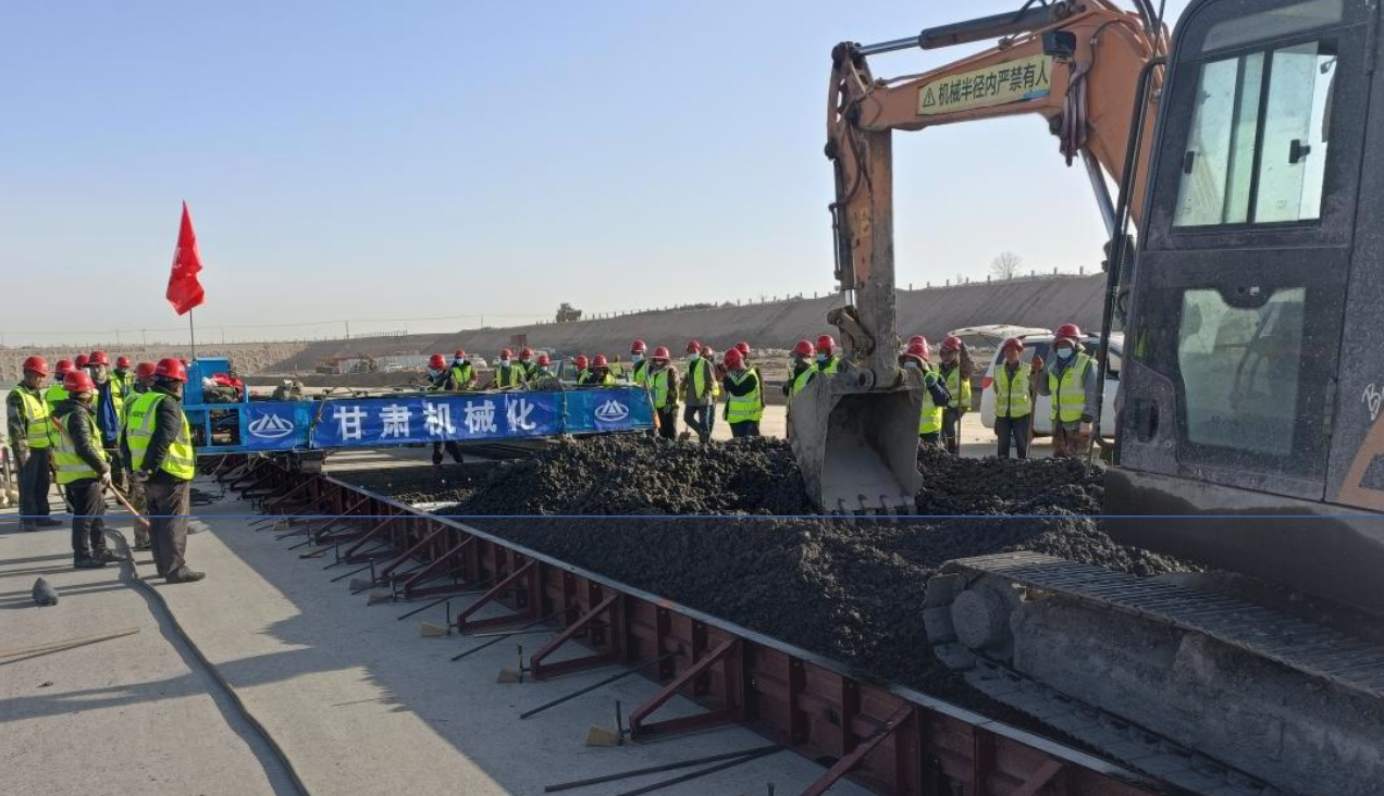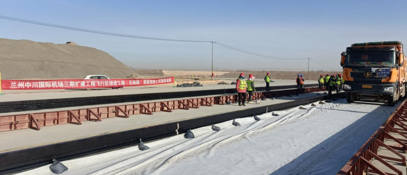 4月20日,由我司承建的蘭州中川國際機場三期擴建工程飛行區(qū)場道工程(五標段)道面混凝土試驗段正式開倉澆筑。