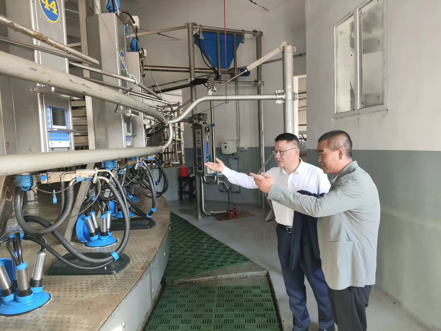 隨后羅世雄公使在候春暉場長的陪同下先后參觀了農(nóng)場牛舍、正在運(yùn)行的烘干爐以及從國內(nèi)進(jìn)口的50位轉(zhuǎn)盤式擠奶廳等設(shè)施設(shè)備。